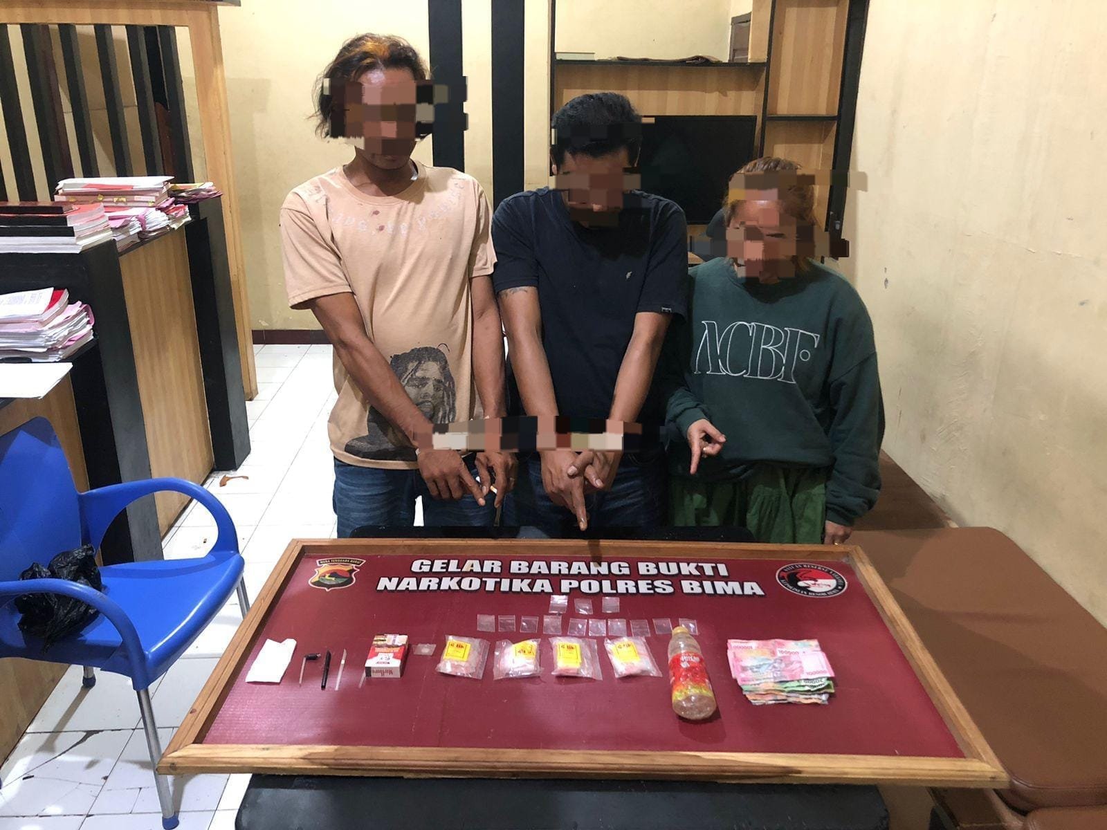 Dua Pria dan satu wanita diamankan oleh Satreskoba Polres Bima terkait penyalahgunaan dan peredaran narkoba golongan saru dalam bentuk bukan tanaman yang diduga kuat narkoba jenis Shabu.