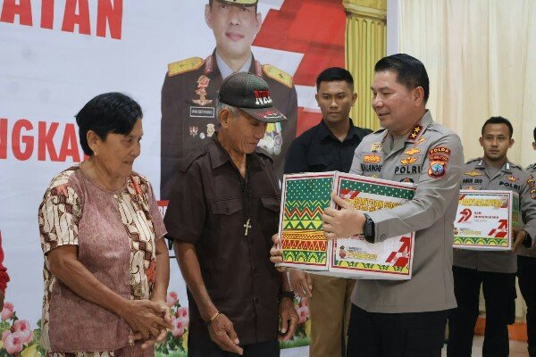 Penyerahan paket bansos ini dipimpin langsung Kapolda Sulawesi Utara Irjen Pol Roycke Harry Langie bersama Ketua Bhayangkari Sulut Ny. Joan Roycke Langie didampingi PJU Polda Sulut dan Pengurus Bhayangkari Sulut serta Forkopimda Minsel, di Balai Desa Pakuweru, Kamis (26/6/2025).