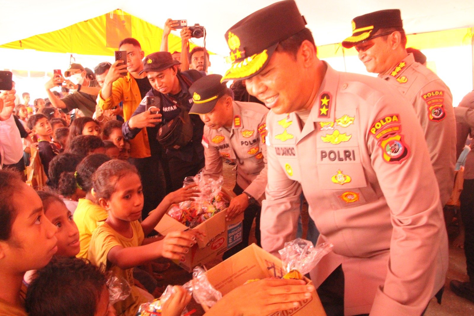 Dalam suasana penuh kehangatan, Kapolda NTT dan Wakapolda NTT bersama pejabat utama Polda NTT disambut antusias oleh anak-anak dan para pengungsi. Dengan penuh empati, Kapolda NTT menyapa anak-anak satu per satu, membagikan bingkisan berisi makanan ringan, mainan edukatif, dan perlengkapan sekolah. Tak hanya itu, Kapolda juga turut bergabung dalam kegiatan hiburan yang dirancang khusus untuk mengembalikan senyum dan semangat anak-anak korban bencana.